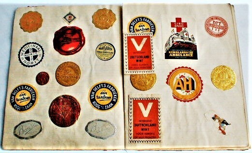 Een schrift met roodzwart gemarmerd kartonnen kaft en linnen rug. Het schrift met ongelineerde bladen bevat een aantal met sluitzegels beplakte pagina's en een geschreven gedichtje. De binnenkant van de achterkaft is beplakt met een pagina uit het tijdschrift 'De Waag'. Dit bevat o.a. een verhaal over Frederik de Grote van Pruisen.