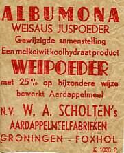 Een gedeelte van de productverpakking van Albumona "Weisaus juspoeder".