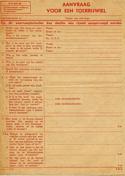 Blanco aanvraagformulier MD 333-08 voor één toerrijwiel.
