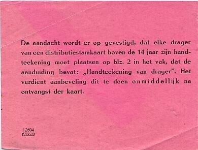Een doorzichtige enveloppe voor distributiestamkaarten met een op roze papier gedrukt begeleidend briefje.