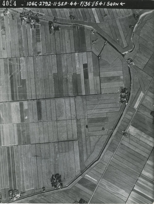 Luchtfoto van het Stompwijkse noordelijke deel van de Meerpolder, in 1944 genomen door de Britse Royal Air Force.