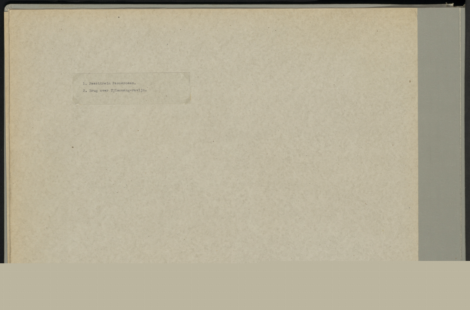 Leeg blad uit een fotoalbum dat is aangeboden door het personeel van het Verenigd Spoorwegbedrijf aan het Hoofd der Staatsspoorwegen J.W.J. Beek, met foto's van de spoorwegen in Nederlands-Indië tussen 1946 en 1948, zonder foto's daarop.