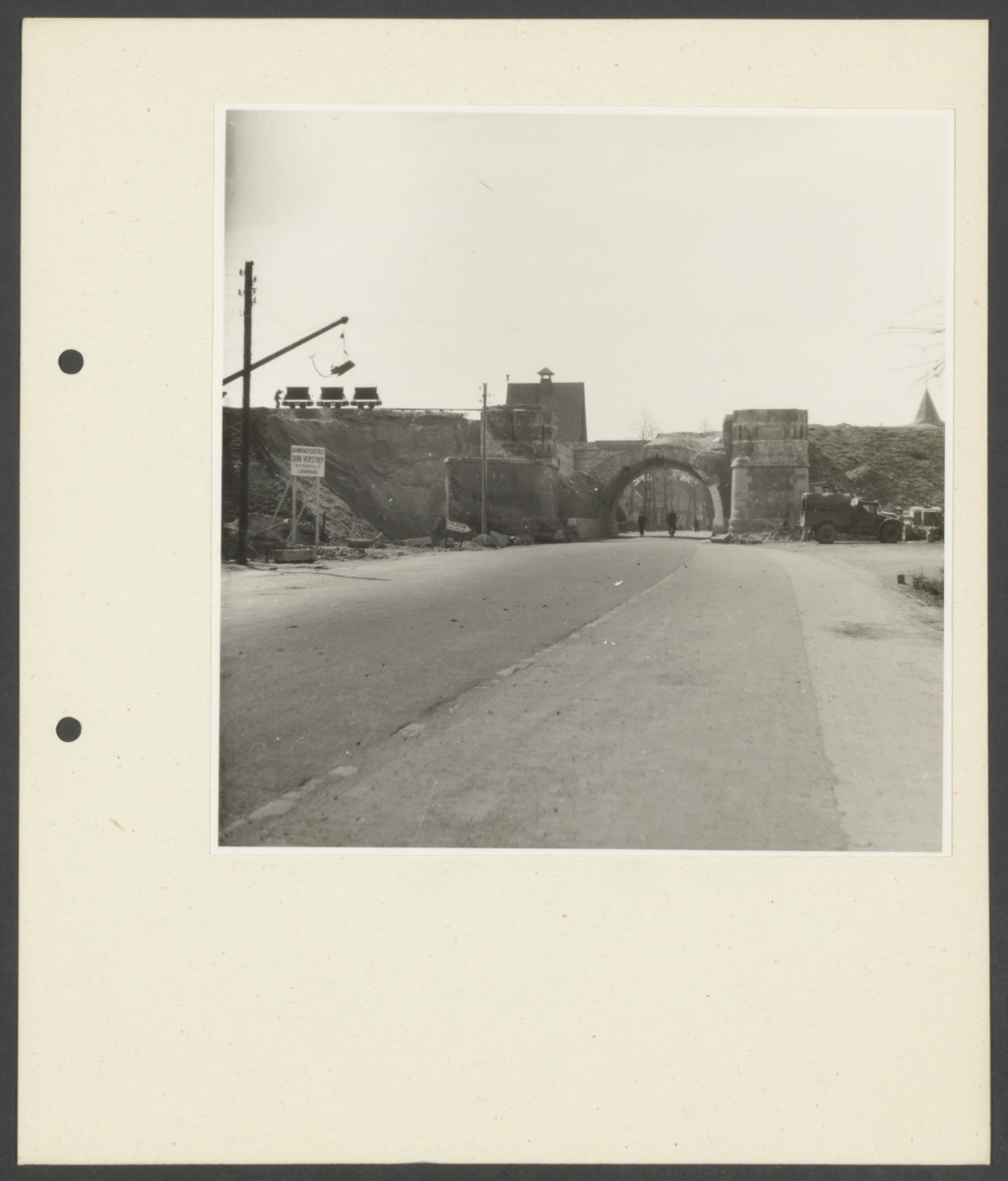 Foto van de oorlogsschade aan het viaduct op de Dorpstraat in Westervoort
