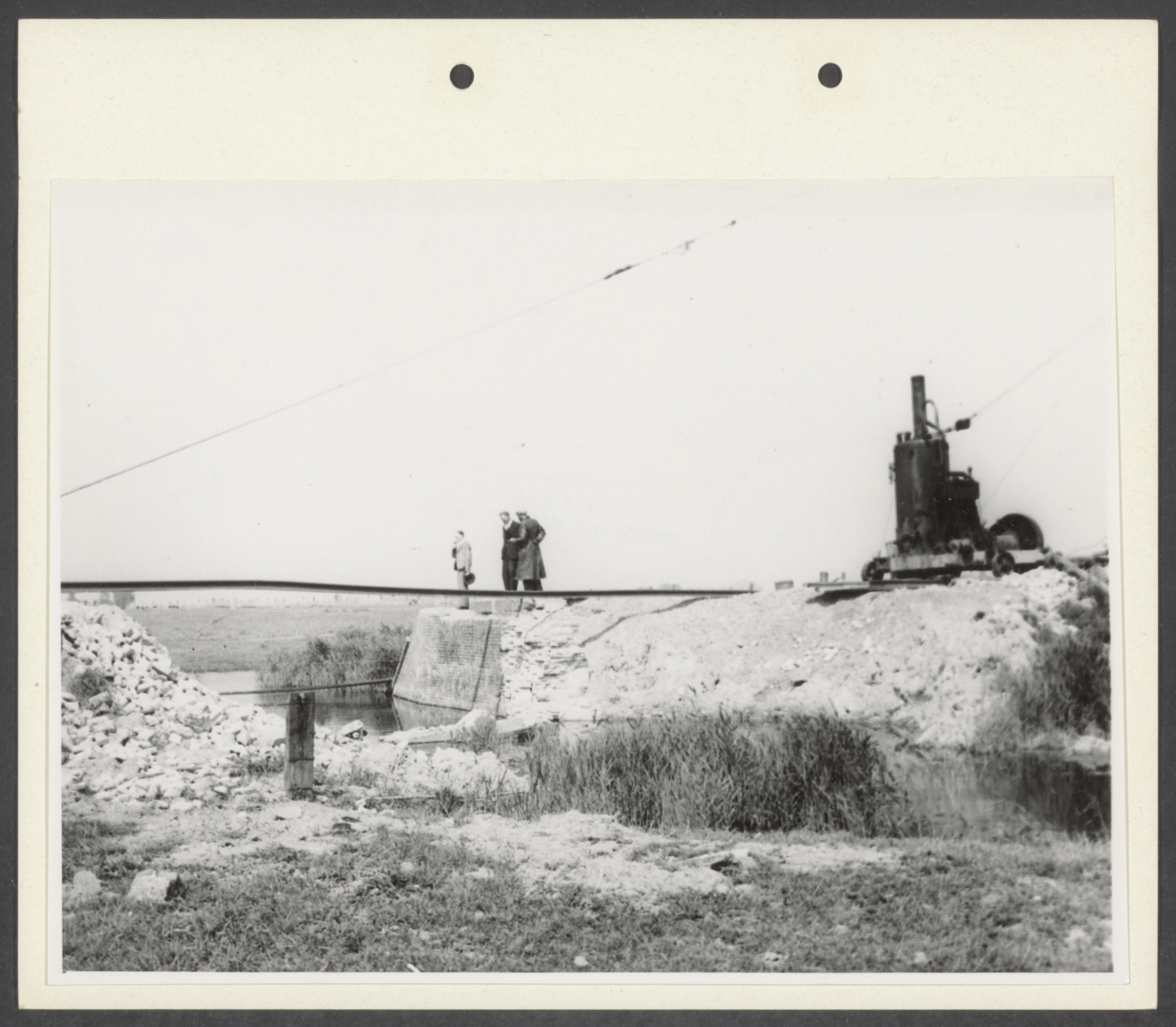 Foto van werkmannen bezig met het spoor op de brug bij Dordrecht