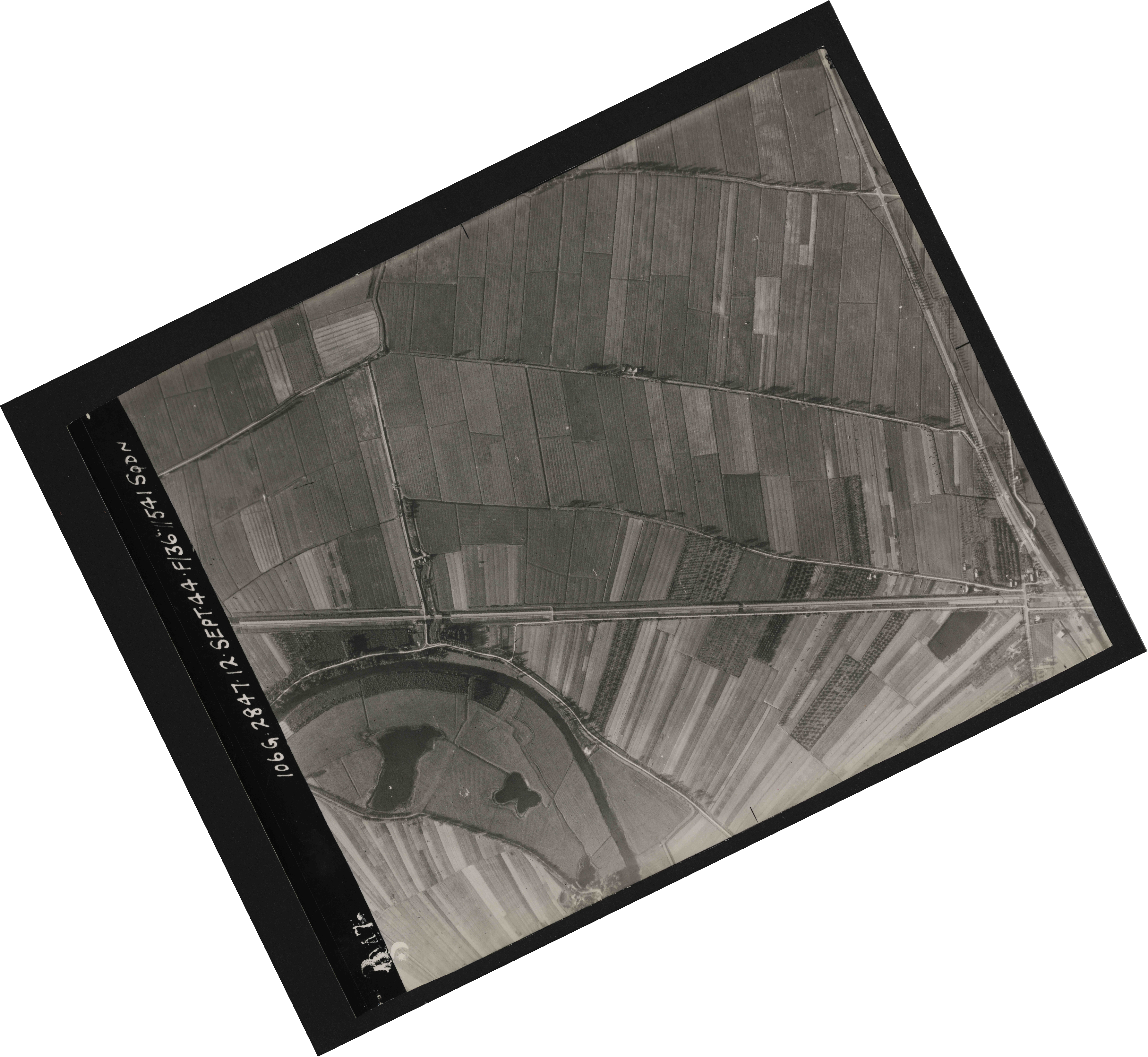 The collection comprises of approximately 94,250 photographs made by the Allied Air Force (RAF) flying over the whole of the Netherlands. The flight dates range from April 14th 1943 until June 18th 1947, but most are taken in 1944 and 1945 during the liberation of the Netherlands. The scale varies for each flight from 1 : 5,000 to 1 : 73,500, common is 1: 7,600 to 18,000. Besides detailed information about the situation during the war they contain valuable information about land use, archeology and topography.