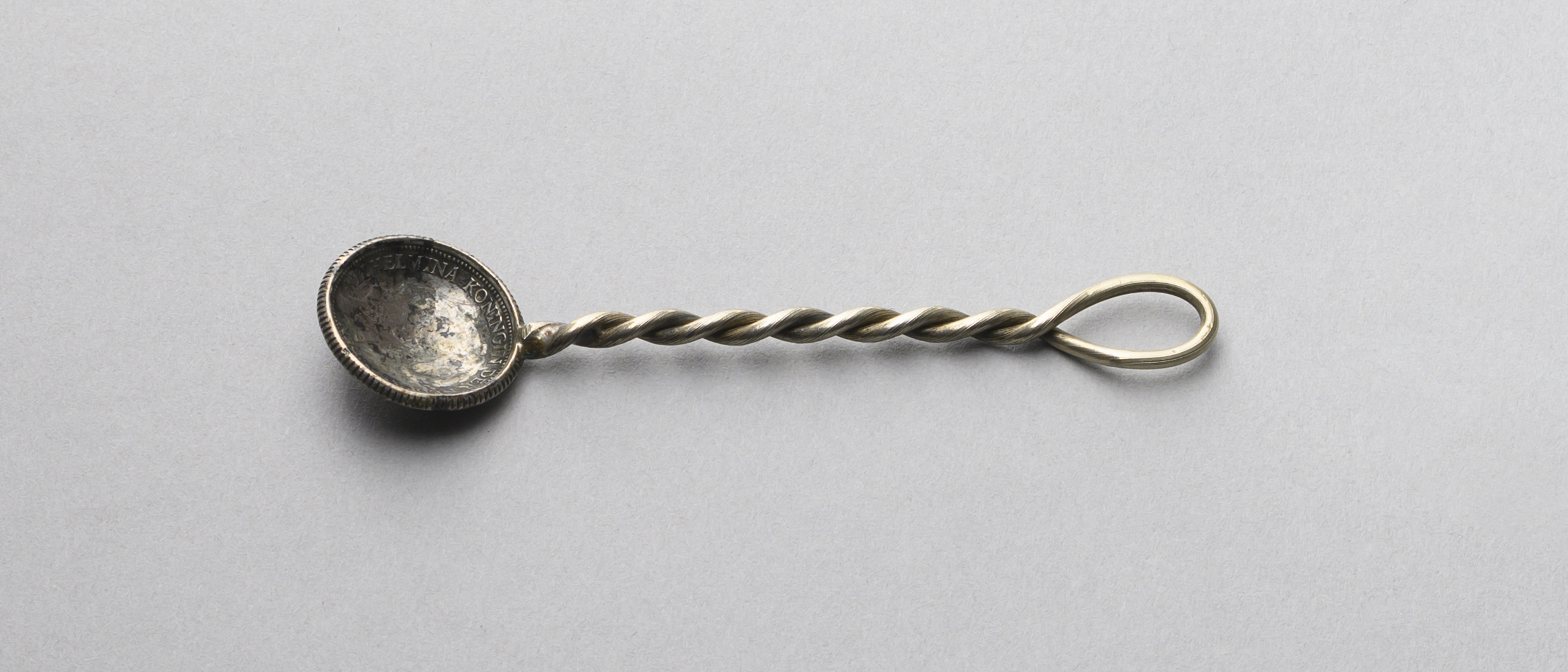 Zilveren lepeltje van dubbeltje en kwartje gemaakt