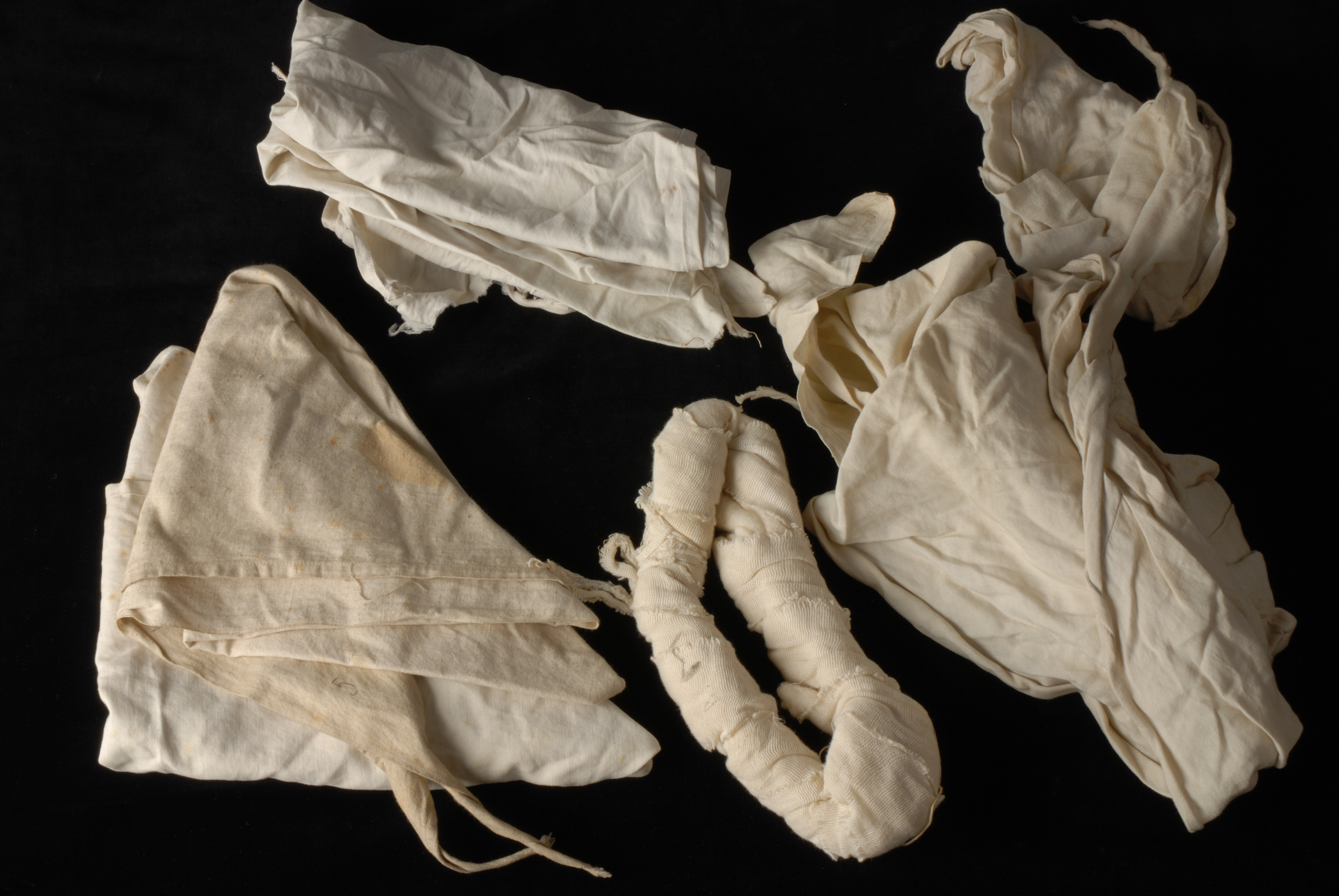 EHBO-kist, groen blik met aan weerszijden een draadhengsel. Drie compartimenten. Inhoud bestaat uit een zeer volledige inventaris aan verbandmiddelen, ontsmettingsmiddelen, hulpmiddelen zoals spelden en scharen en glazen flesjes, houten spalken en mitella´s. Tevens in kist een logboekschriftje waarin aantekeningen over gebruik van de inhoud.