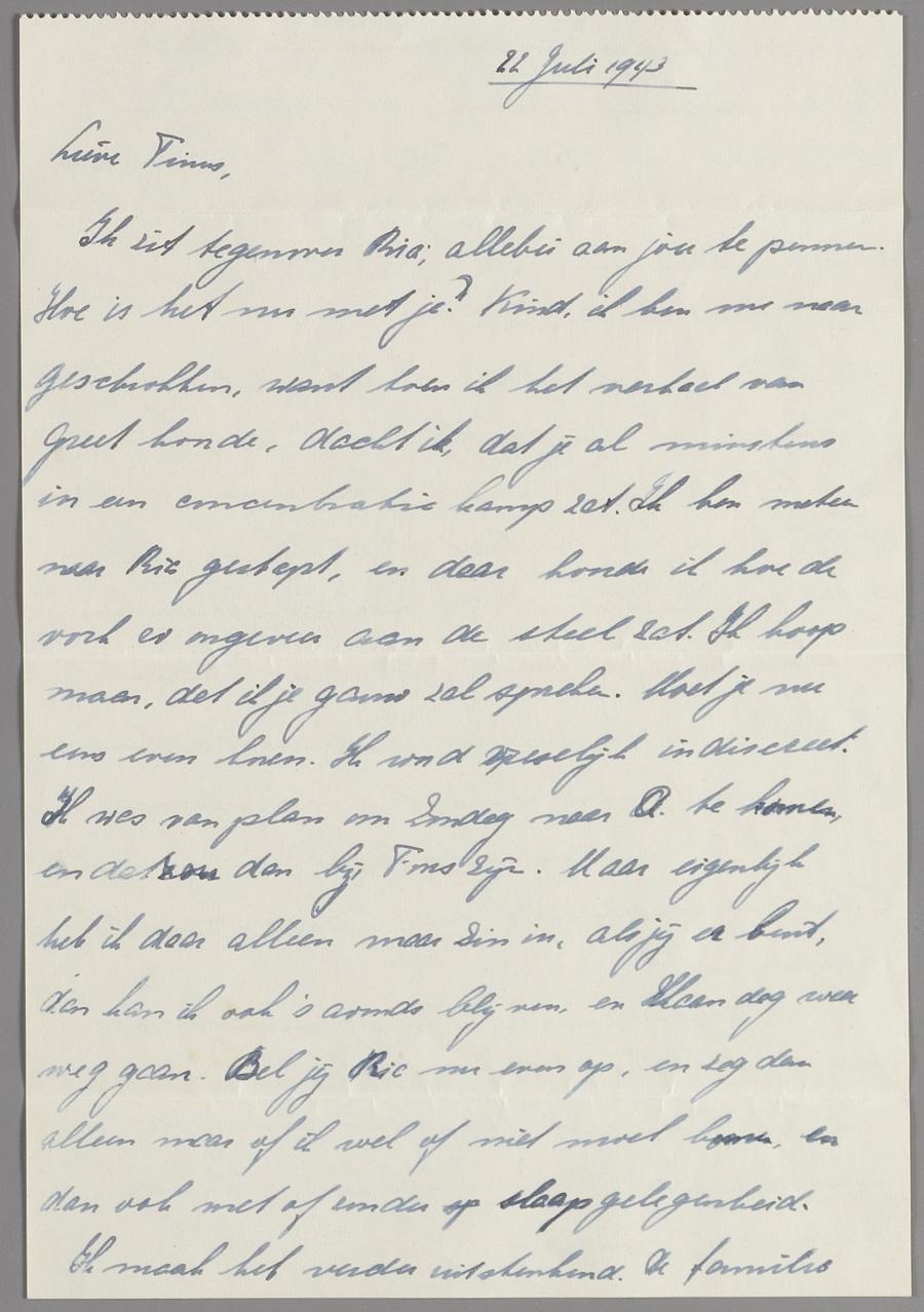 Brieven (3) van M. Hertzdahl aan Tineke Wibaut-Guilonard in kamp Vught, 1944
