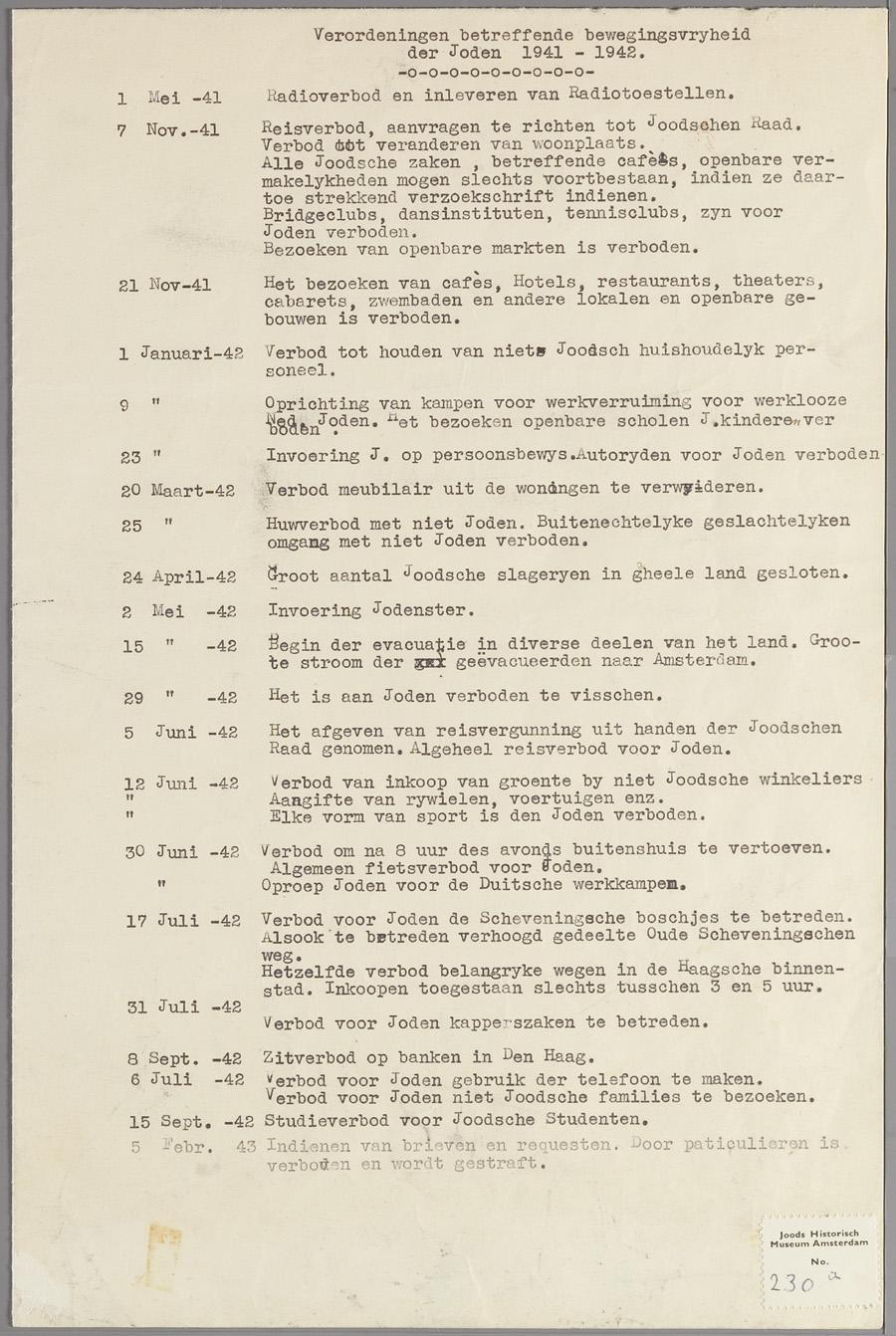 Chronologie van de anti-joodse maatregelen in de periode van 1 mei 1941 tot 5 februari 1943
