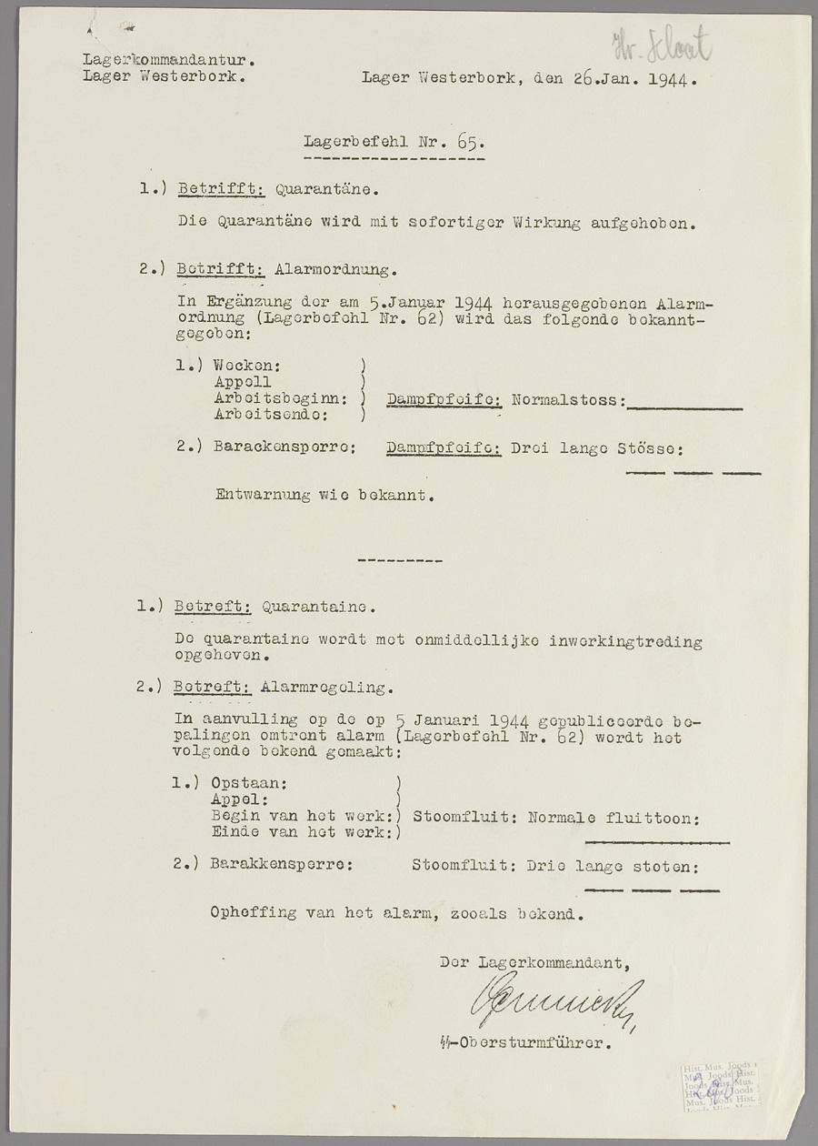 Lagerbefehl nr. 65, Westerbork, januari 1944