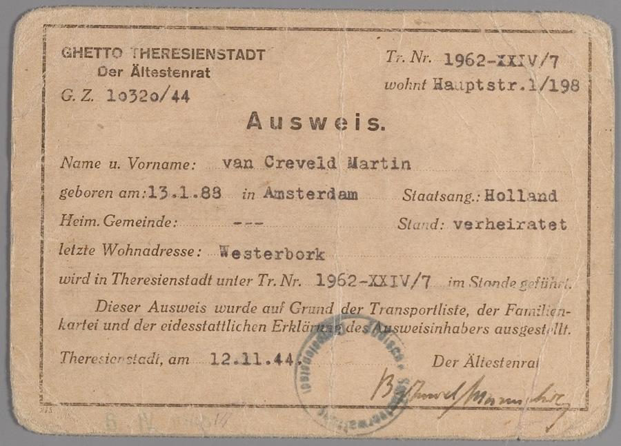 Persoonsbewijs van Martin van Creveld, Theresienstadt, november 1944