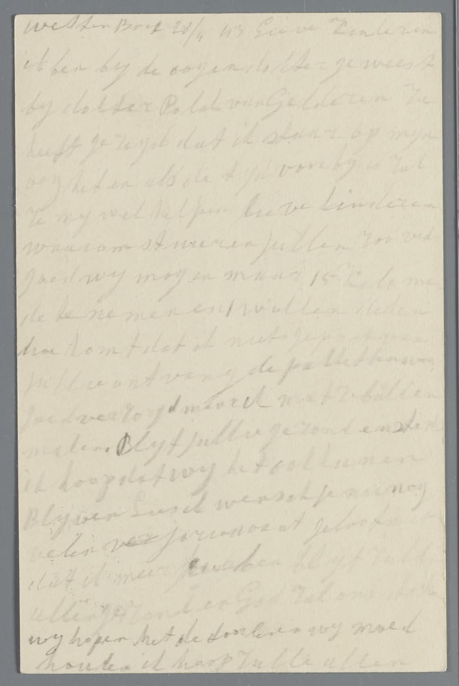 Briefkaarten (2) van Judic Staal-Presser aan haar dochter Elisabeth (hier: L.) Boers-Staal en en schoonzoon Sally Boers, Westerbork, april 1943