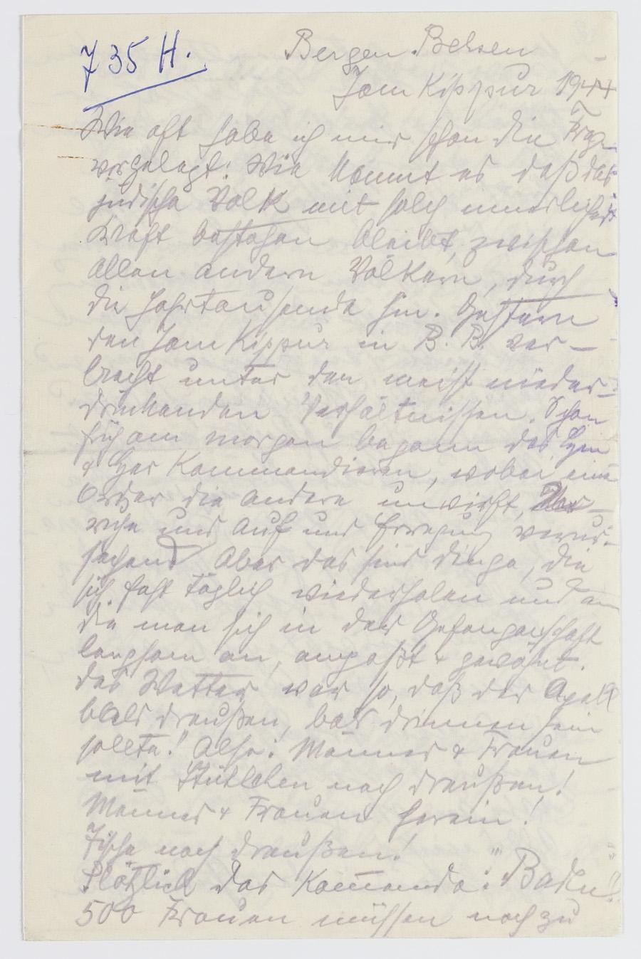 Handgeschreven essay met uitgetypt afschrift van Selma van Leeuwen-Gerzon n.a.v. Jom Kippoer in het kamp Bergen-Belsen, 1944