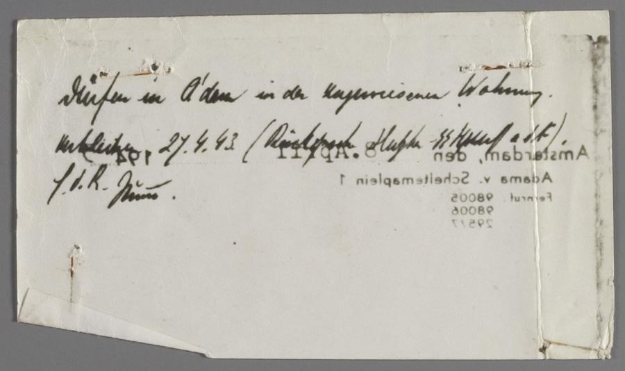 Oproep aan familie Andriesse voor hun verplichte verhuizing van Utrecht naar Amsterdam, april 1943