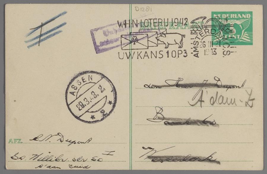 De briefkaart kwam als onbstelbaar retour.