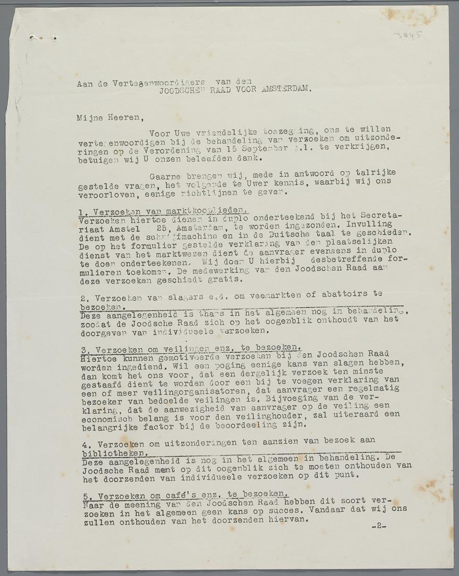 Circulaire van de Joodse Raad in Amsterdam aan zijn vertegenwoordigers over procedures m.b.t. o.a. reis- en verhuisvergunningen, 1941(?)