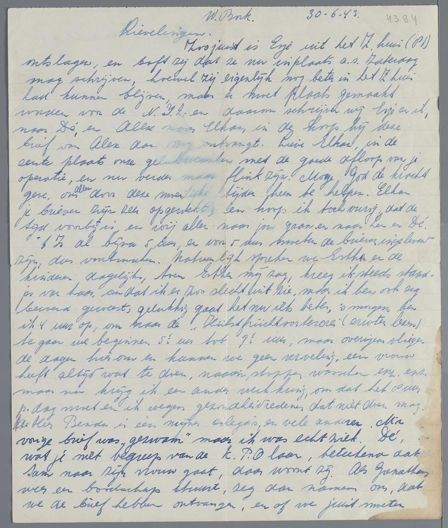 Brief uit Westerbork van Alida Abas-de Vries aan fam. David de Vries, juni 1943