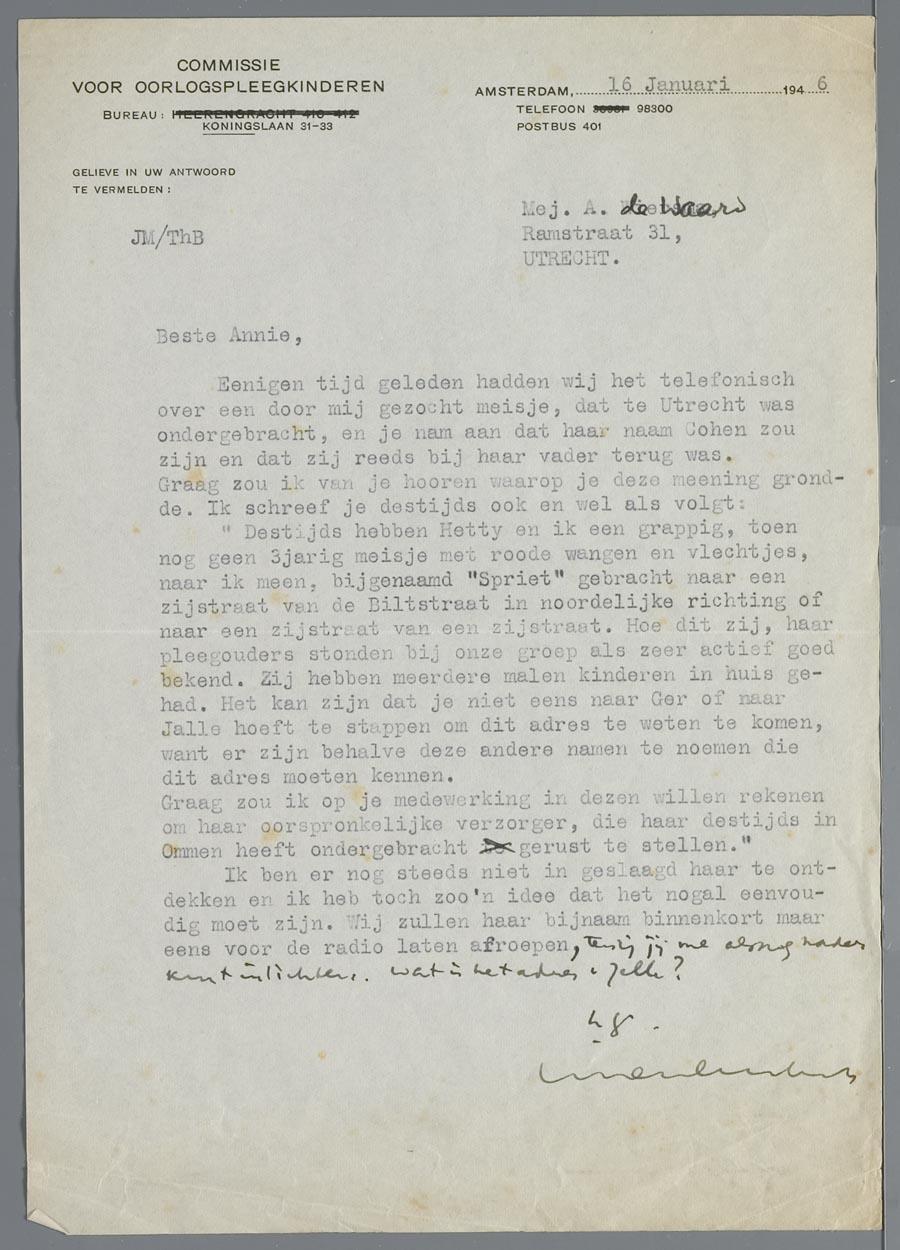 Correspondentie betreft vooral het opsporen van verschillende kinderen die in onderduik hebben gezeten en financiële aangelegenheden.
