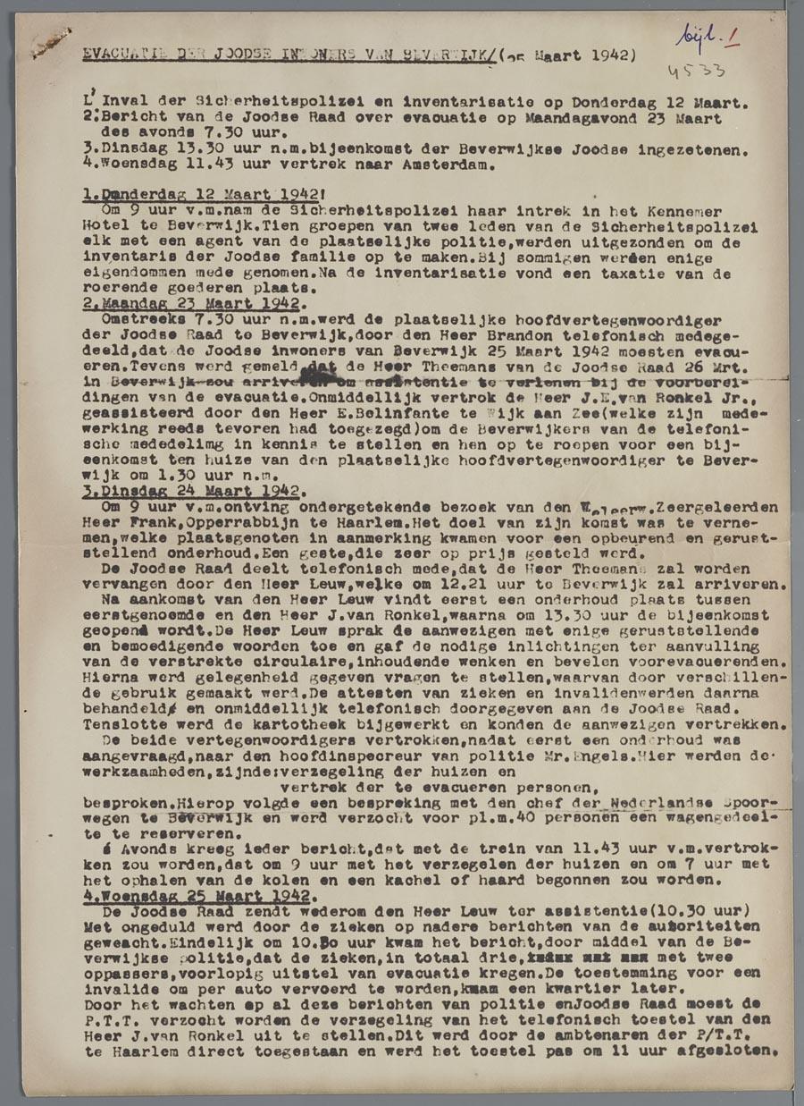 Verslag van de evacuatie der joodse bewoners van Beverwijk, maart 1942