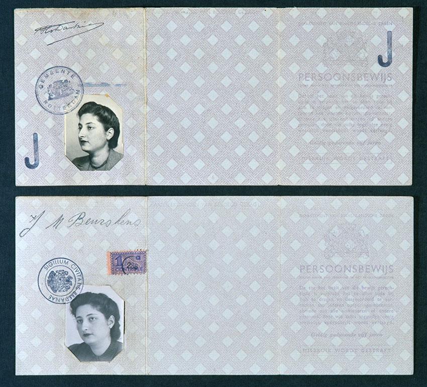 Persoonsbewijzen (1 echt, 1 vals) t.n.v. Hanna van Dantzig (J.M. Beurskens), 1941
