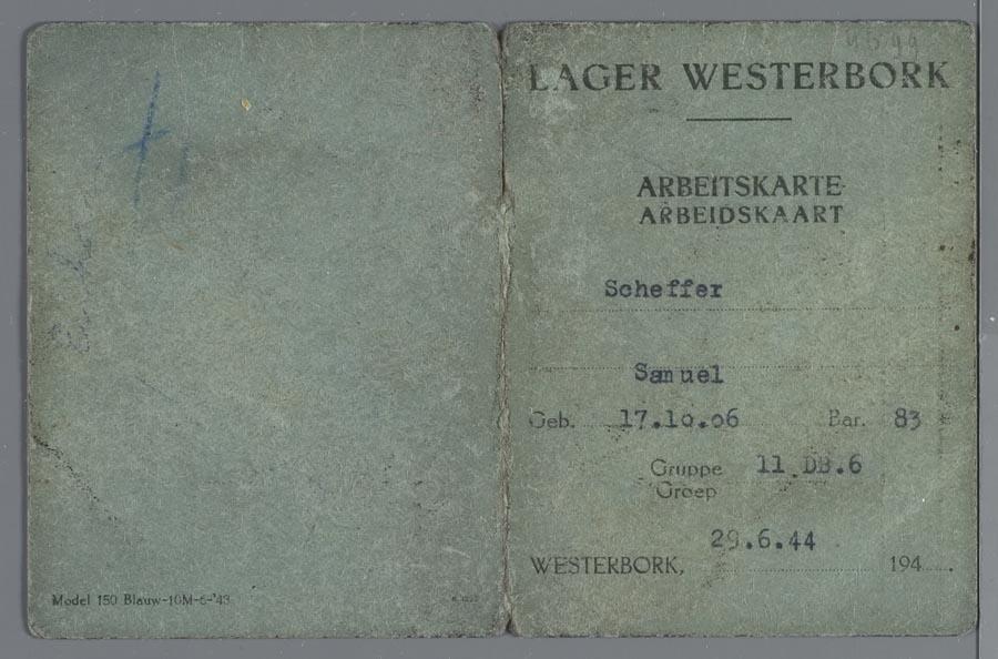 Arbeidskaart van Lager Westerbork op naam van Samuel Scheffer, juni 1944 - Oorlogsbronnen.nl