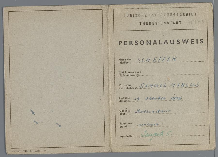 Identiteitsbewijs van Theresienstadt t.n.v. Samuel Scheffer, 1945
