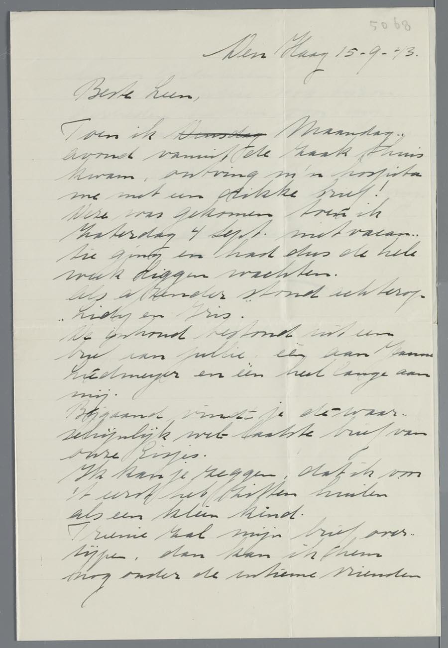 Brief waarin "Dick" aan "Leen" bericht dat hij/zij brieven gericht aan hem/haarzelf en aan andere bekenden van Iris en Lidy Eisendrath heeft ontvangen, 1943