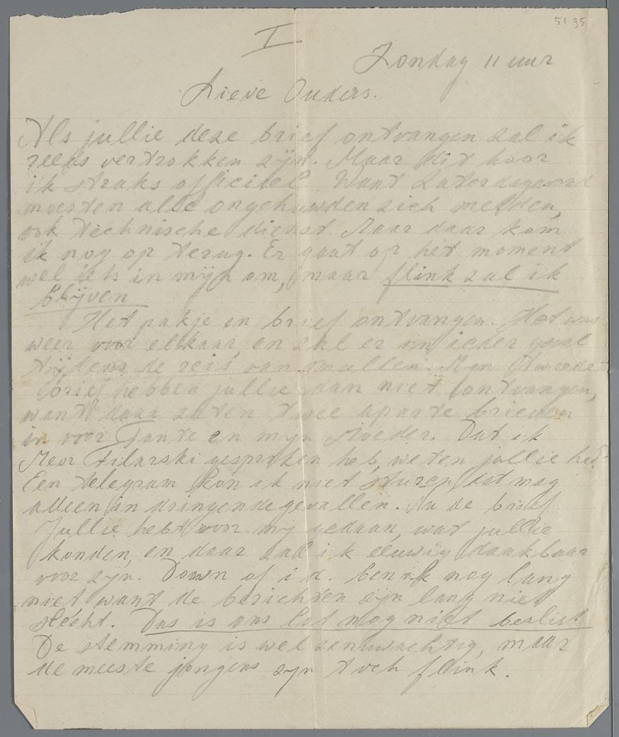 Brief van Abraham d'Oliveyra uit Westerbork aan zijn ouders in de Rustenburgerstraat, over transport, 1942