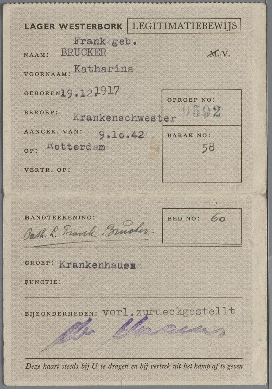 Legitimatiebewijs op naam van Catharina Frank-Brucker, Westerbork, 1942