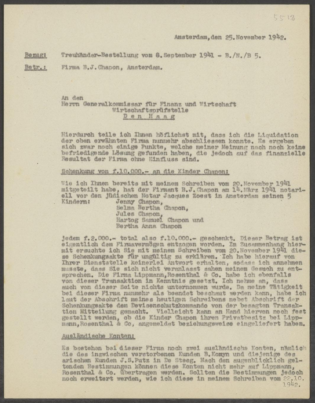 Verslag over de liquidatie van firma B.J. Chapon, 1942