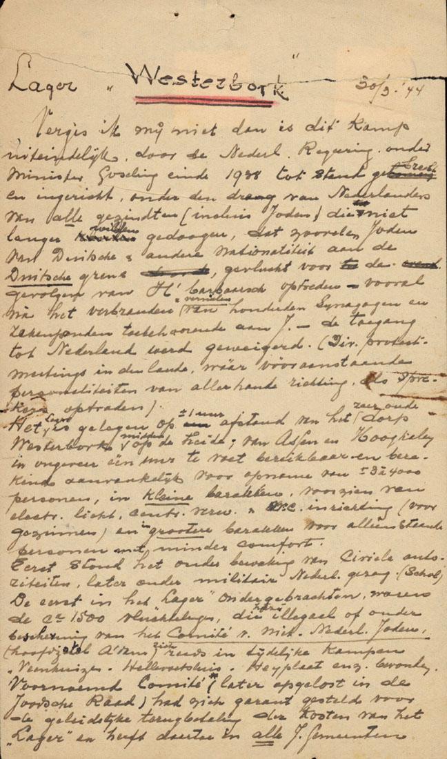Met o.a.: Dagboek van Theresienstadt: 8 februari 1942 tot 17 mei 1944. Theresienstadt (vervolg, d.d. 2 mei 1944 (40 p.) Memo over Westerbork: 30-(?)-1944 (9 pagina's). Memo over Groningen (Joodse Raad etc.), d.d. 2 april 1944 (9 pagina's).
