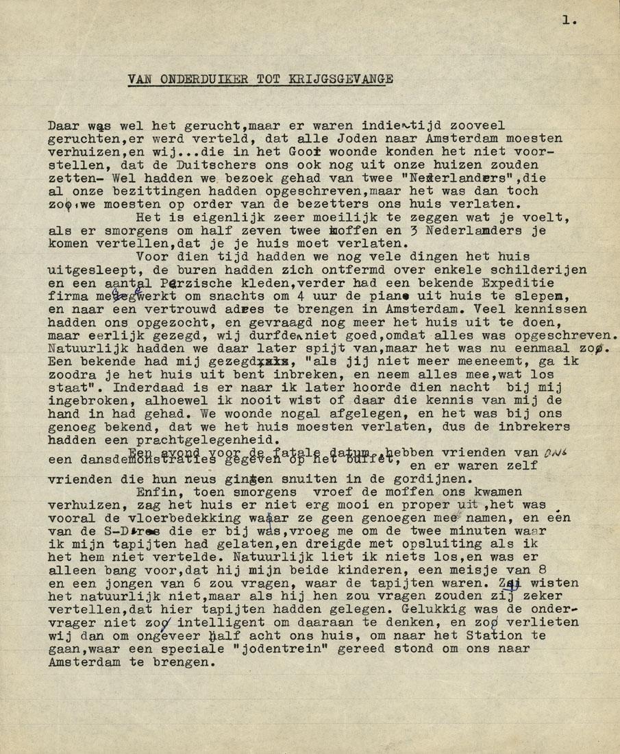 Het bewaard gebleven verslag is een na de oorlog uitgetypte versie en niet het oorspronkelijke document. Het verslag vangt aan kort voor juni 1943 en eindigt in mei 1945.