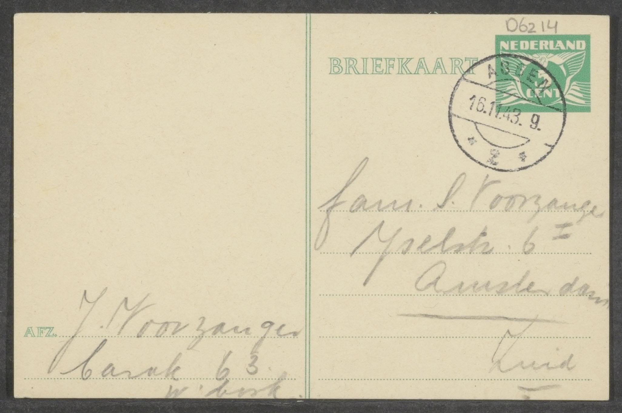 Briefkaarten (14) van Jacob Voorzanger in Westerbork aan familie Salomon Voorzanger in Amsterdam, betreffende bevestiging ontvangst pakketten, 1943