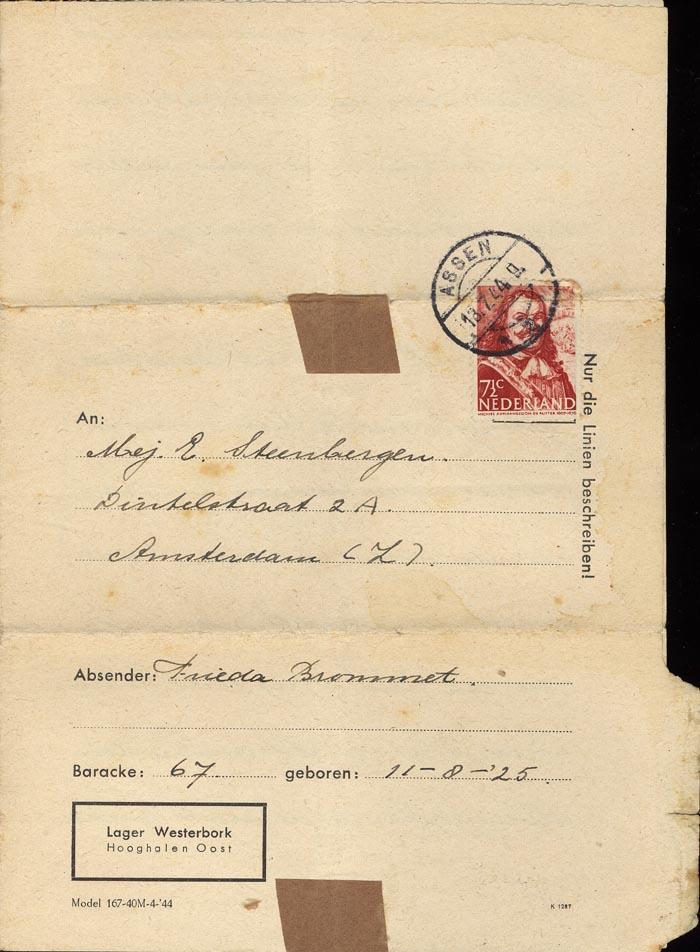 Brieven (2) van Frieda Brommet vanuit kamp Westerbork aan Bep Steenbergen, Amsterdam, juli 1944