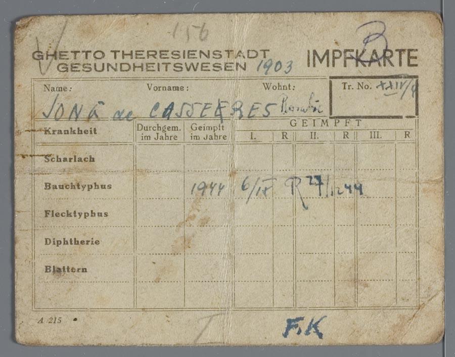 Inentingskaart t.n.v. Rosalie de Jong-Casseres, Theresienstadt, 1944