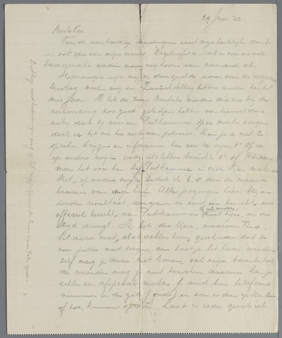 Brief van Isidore de Haan en Sara de Haan-Rudelsheim vanuit Westerbork aan Salomon Vaz Dias, juni 1943