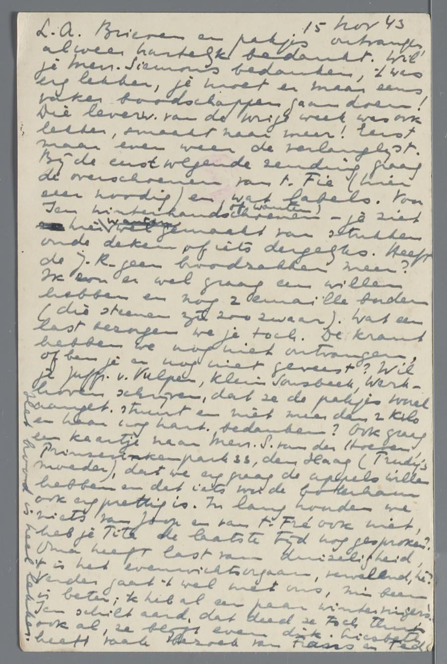 Briefkaart (2) van fam. Muller aan Adry van Beek vanuit Westerbork, 1943