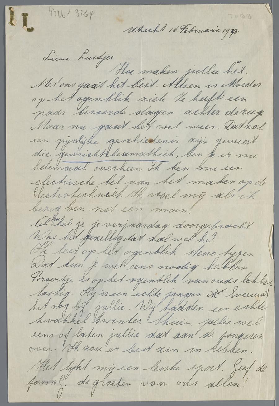 Brief aan Hetty en Eduard van Vriesland tijdens hun ballingschap in Zwitserland, februari 1943