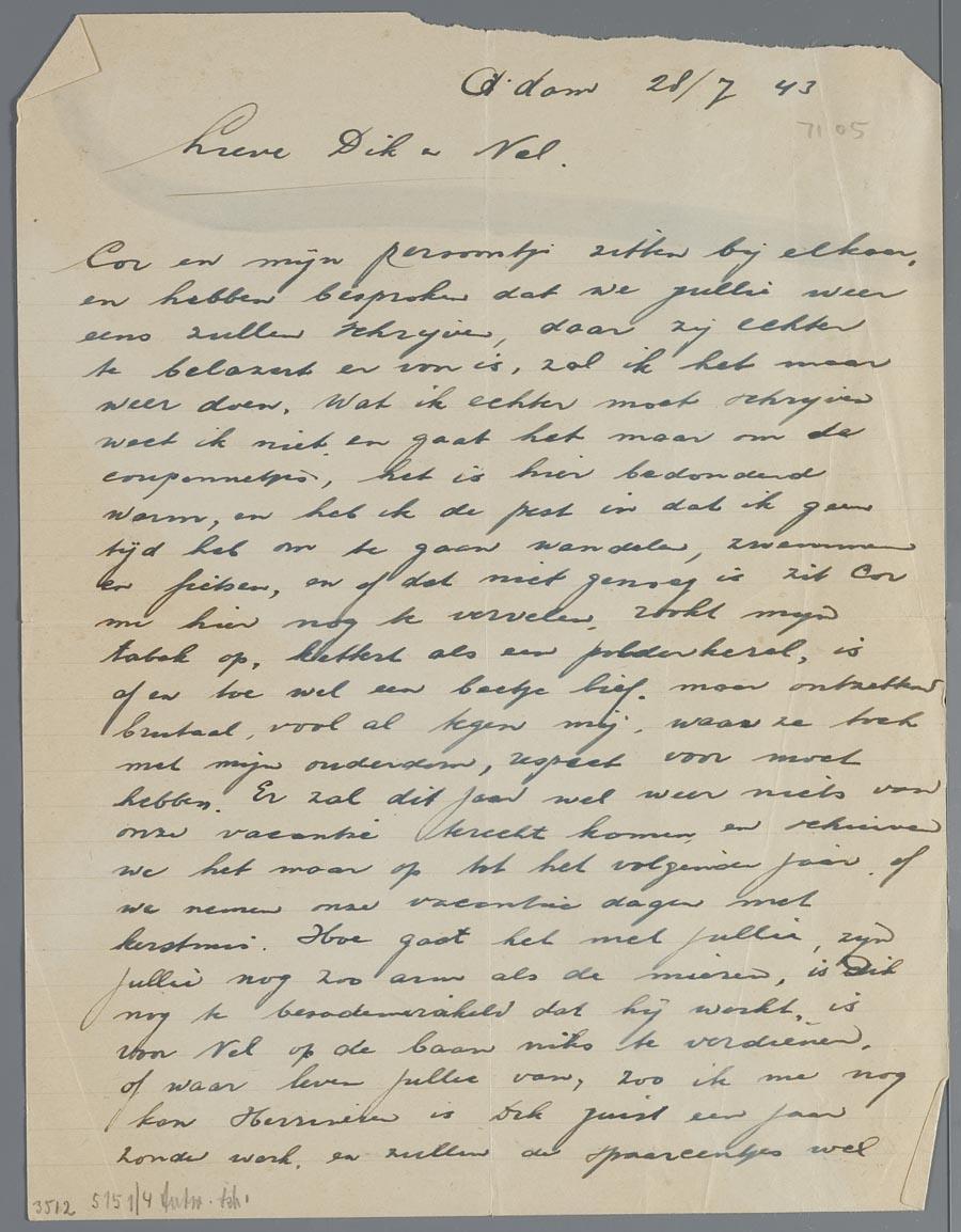 Brief aan Hetty en Eduard van Vriesland tijdens hun ballingschap in Zwitserland, juli 1943