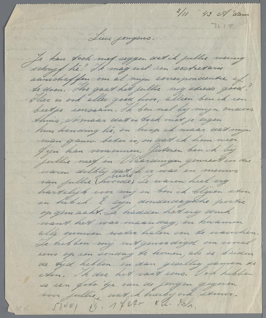 Een brief aan Hetty en Eduard van Vriesland tijdens hun ballingschap in Zwitserland, d.d. 2 november 1943.