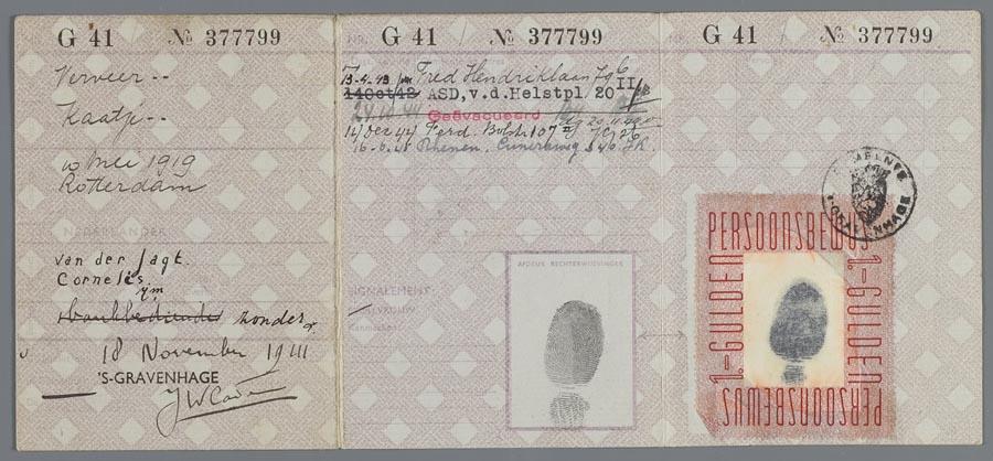 Een persoonsbewijs op naam van Kaatje Verveer waaruit de "J" verwijderd is, d.d. 1941
