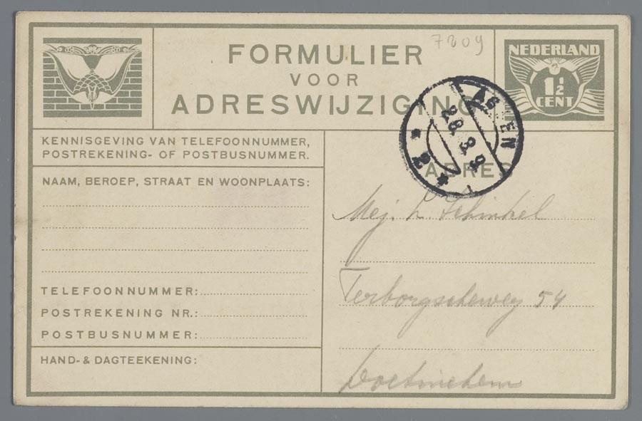 Adreswijziging van Naatjen Slösser van Doetinchem naar Westerbork, circa 1942