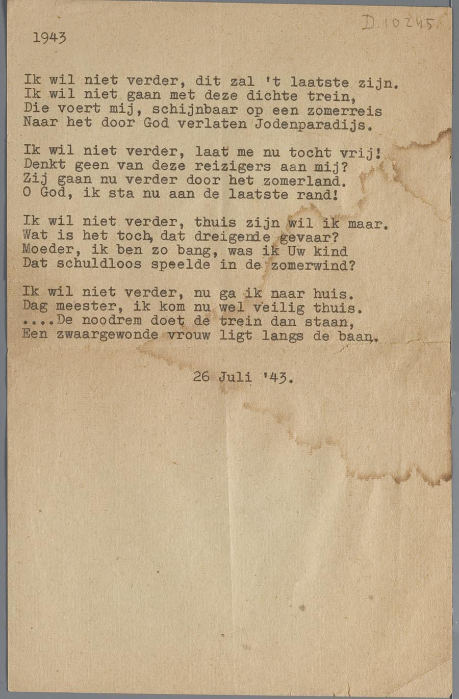 Typoscript van het gedicht "1943" van Ivonne Lina de Swarte, 1943