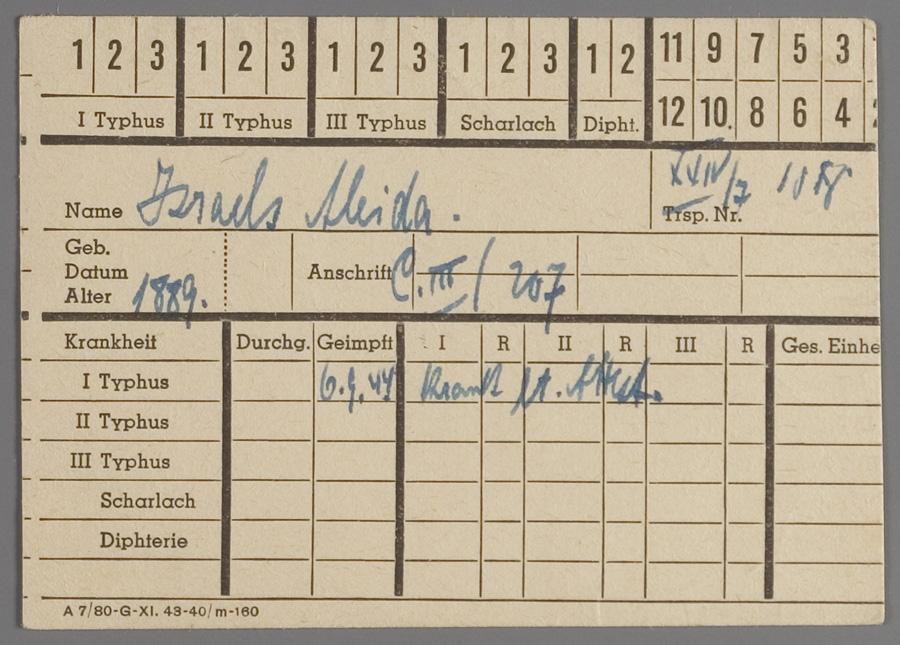 Inentingskaart op naam van Aleida Israels-de Jong, Theresienstadt, september 1944.