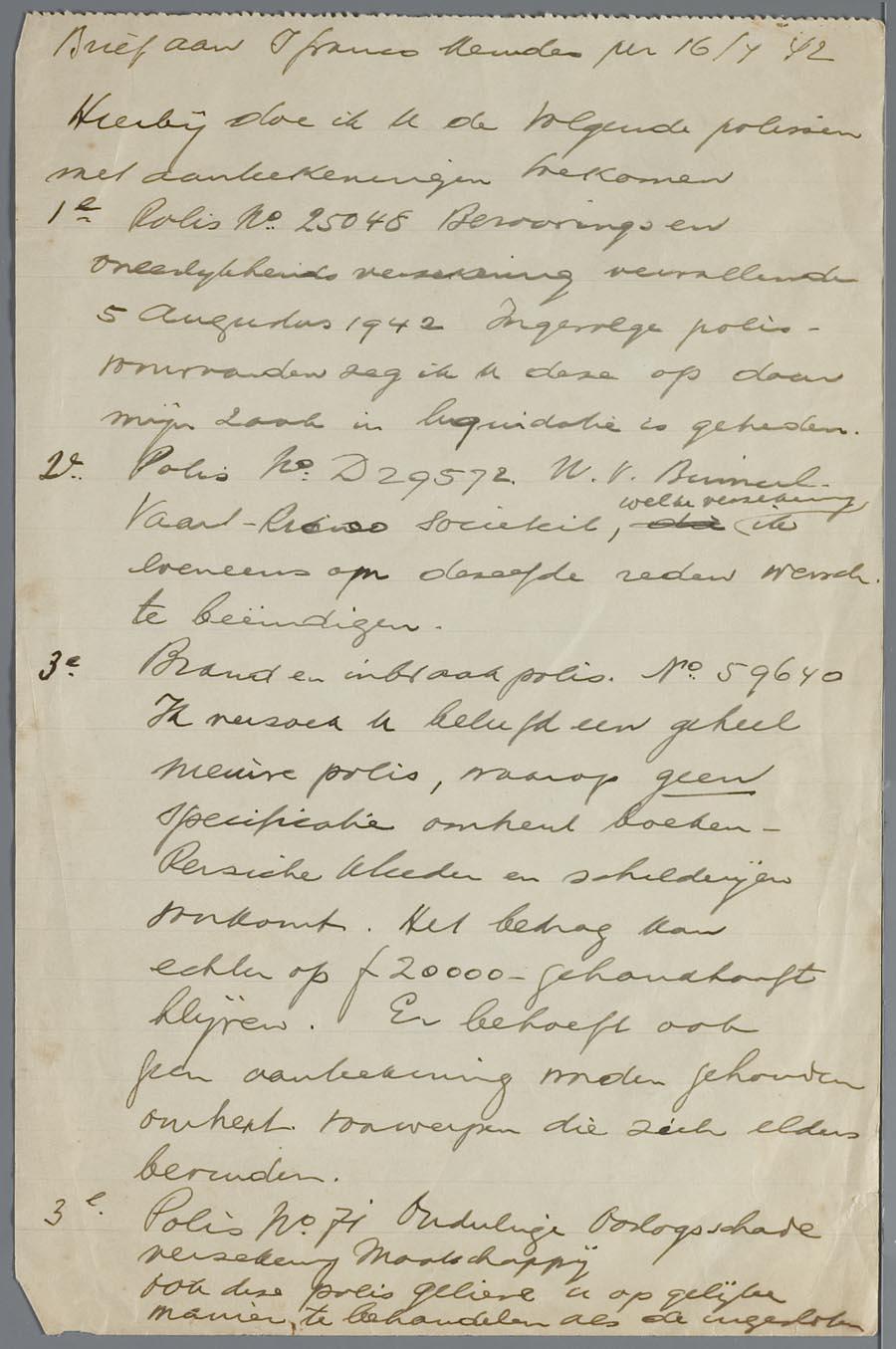 (Concept-)brief aan I. Franco Mendes over verzekeringspolissen, d.d. september (of april?) 1942.