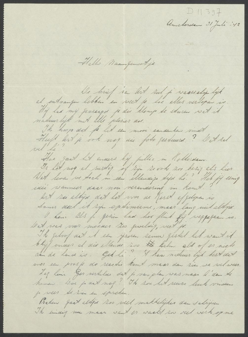 Brief van een meisje Leni uit Amsterdam aan haar naamgenootje in Rotterdam, 1942