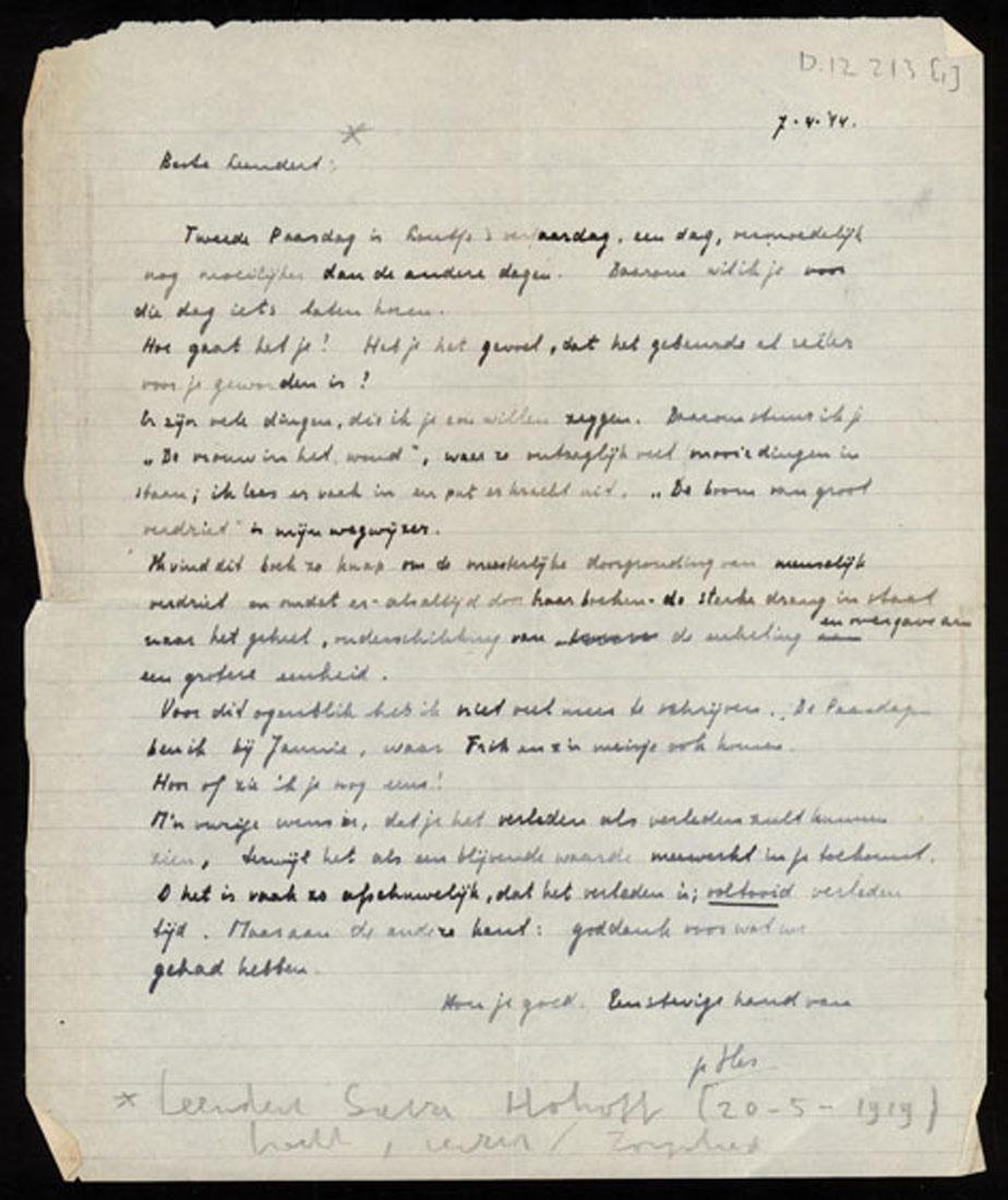 Twee brieven van ene Hes aan Leendert Hohoff in verband met het overlijden van zijn verloofde Louise van Raalte en een door Hes overgeschreven boek van Henriette Roland Holst, 1944