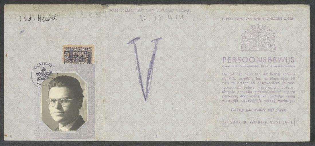 Vervalst persoonsbewijs van Max Gruber ten name van Jan van den Heuvel, ca. 1944