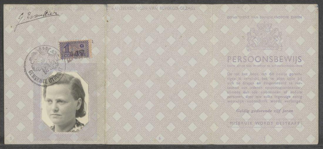 Bevat een persoonsbewijs ten name van Truitje van Lier, een Tweede Distributiestamkaart, een textielen armband met het woord "Oranje", een brochure van Kindjeshaven en bonkaarten.