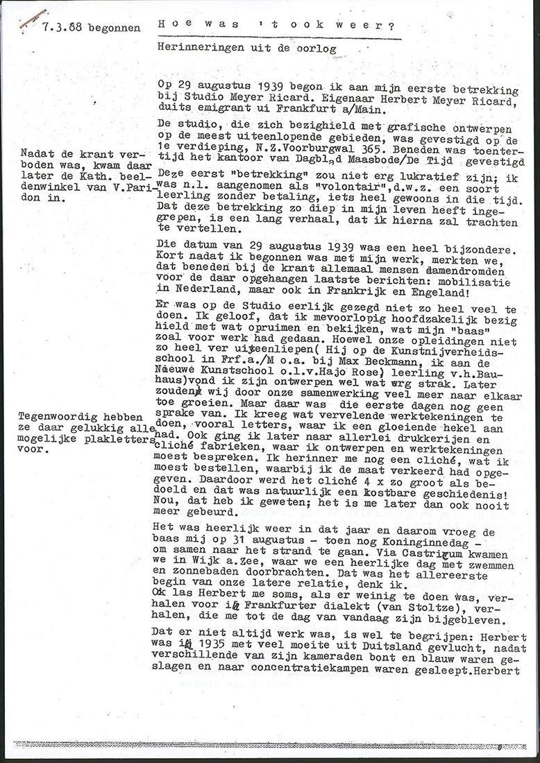 Fotokopie van herinneringen aan de oorlog van mevrouw Vera Meyer Ricard-Haymann, 1989